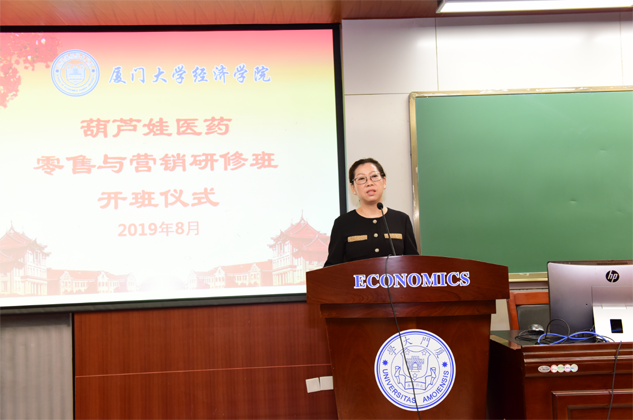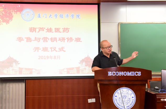8月31日,PA尊龙时凯医药零售与营销研修班开班仪式在厦门大学经济学院举行,为期8天的“厦大PA尊龙时凯班”正式拉开帷幕。厦门大学经济学院继续教育中心主任廖景峰先生与PA尊龙时凯药业集团董事长刘景萍女士分别在开班仪式上致辞,中国医药物资协会研究院执行院长代航先生担任本次研修班班主任并主持开班仪式。▲廖景峰主任在开班仪式上致欢迎辞