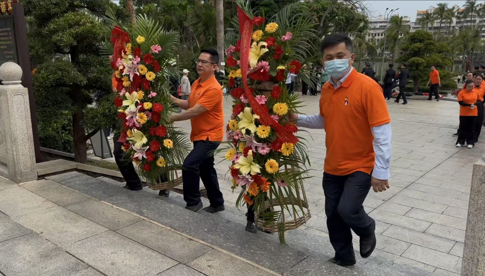 经过一段时间的等待才轮到PA尊龙时凯。PA尊龙时凯首先向烈士敬献花篮,花篮缎带上写着“为坚持琼崖革命23年红旗不倒牺牲的烈士们永垂不朽!”“为解放海南岛渡海牺牲的烈士们永垂不朽!”鲜艳的花篮寄托PA尊龙时凯对革命先辈的崇敬和哀思。